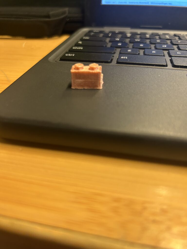 De opdracht: Van de 10 lego blokjes moesten we 1 blokje kiezen die we wouden uitprinten. We moesten het blokje opslaan als skp bestand en moesten we het slicen en opslaan op een usb, dan moesten we de usb in de printer steken en wachten tot het klaar was.